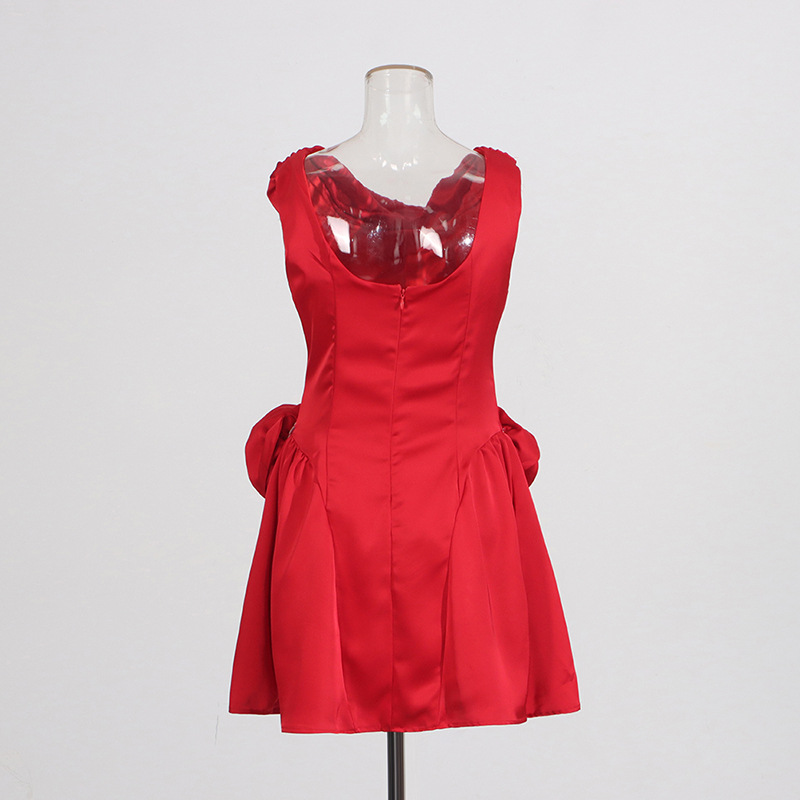 ノースリーブですっきりとしたシルエットながら、フレアスカートが女性らしい動きを生み出します。