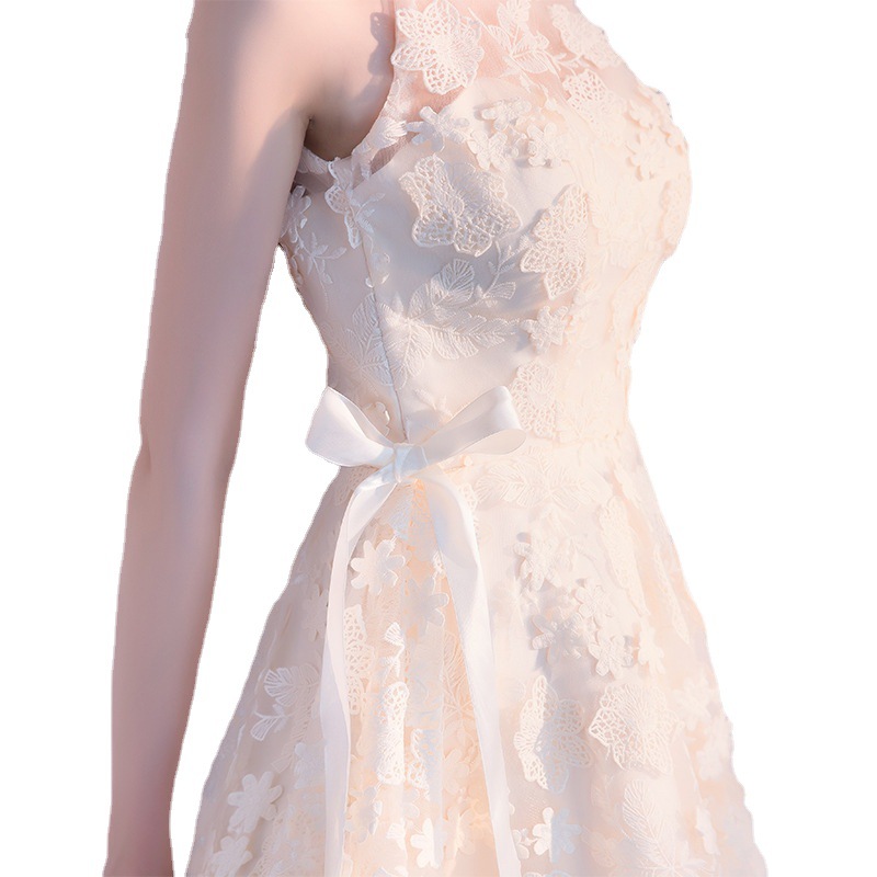 透け感のあるレース素材が華やかさを添え、ふんわりと広がるスカートラインが女性らしいシルエットを作り出します。