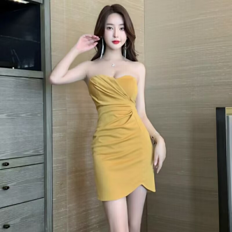 華やかなキャバシーンにぴったりのベアトップ型ミニドレスです。